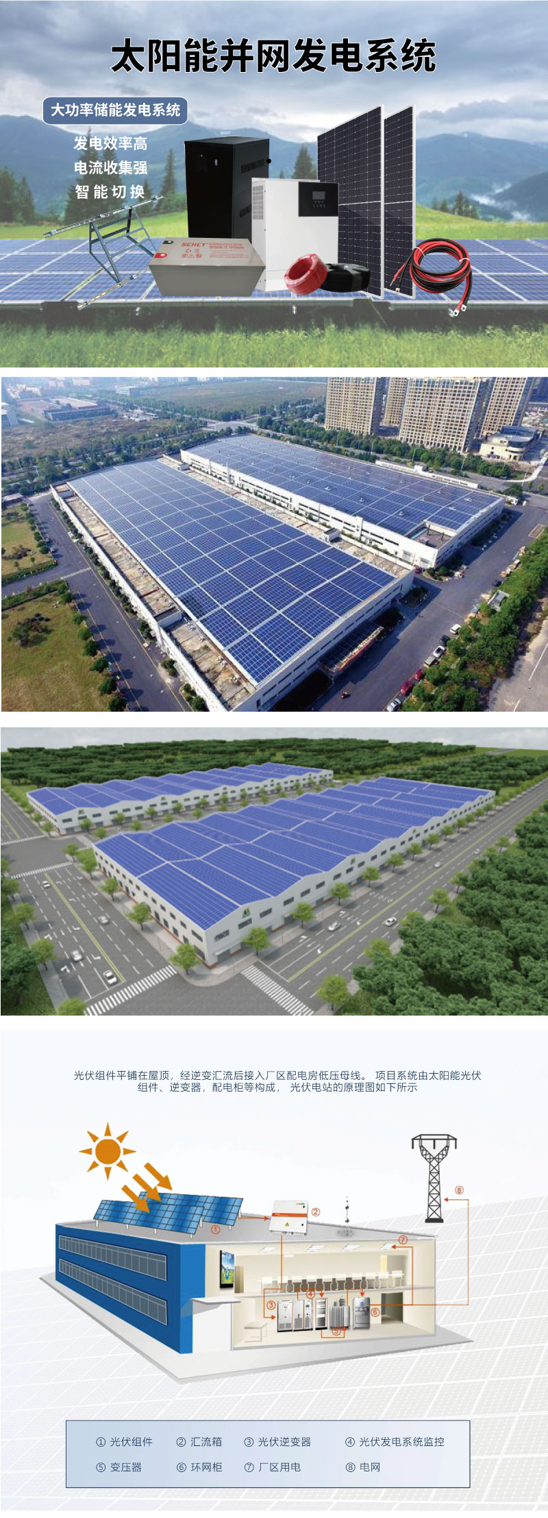 企業(yè)屋頂廠房并網(wǎng)光伏發(fā)電大型分布式太陽光伏發(fā)電儲能系統(tǒng)一體化